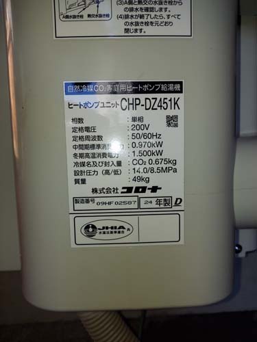 萩市 SANDENエコキュート→コロナ自然冷媒CO2家庭用ヒートポンプ給湯機貯湯ユニットCTU-37AZ1K、ヒートポンプユニットCHP-DZ451K エコキュート交換工事